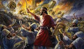 "백성이 외치고 제사장들이 나팔을 불매 성벽이 무너져 내린지라 백성이 각기 앞으로 나아가 그 성에 들어가서 취하니라" (여호수아 6:20)