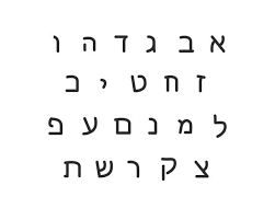 히브리어 알파벳은 22개의 자음으로 이루어져 있으며, 일부 글자는 어미형이 따로 존재합니다. 또한, 현대 히브리어에서는 사용되지 않지만, 성경 히브리어에서는 모음 기호(니쿠드, Niqqud)를 사용하여 발음을 표시합니다.